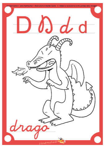 Da Filastrocche.it e Désirée Gedda ecco la lettera D con il drago da colorare come più vi piace. Un bellissimo regalo per voi, per imparare divertendosi!