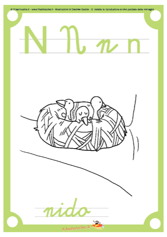 Da Filastrocche.it e Désirée Gedda ecco la lettera N con il nido da colorare come più vi piace. Un bellissimo regalo per voi, per imparare divertendosi!