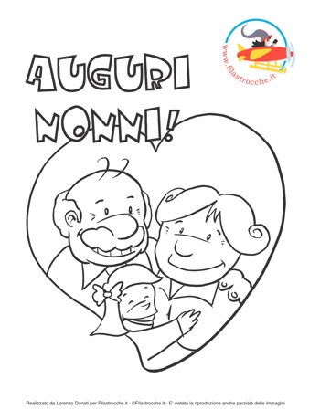 Coloriamo insieme questo simpatico disegno da regalare ai nonni disegnato per Filastrocche.it da Lorenzo Donati.