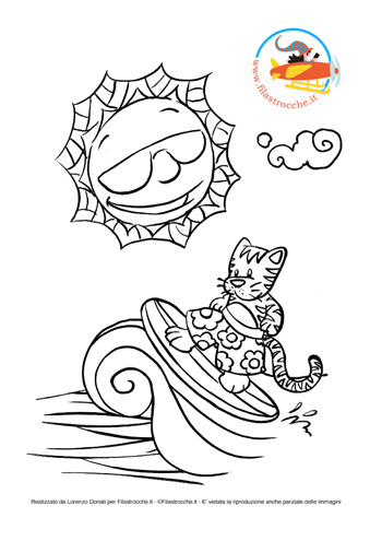 Coloriamo insieme questo simpatico gatto surfista realizzato per Filastrocche.it da Lorenzo Donati.