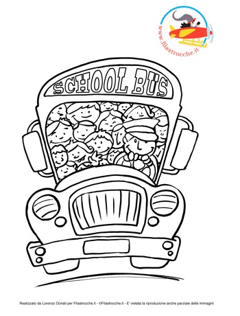 Coloriamo insieme questo simpatico scuolabus realizzato per Filastrocche.it da Lorenzo Donati.