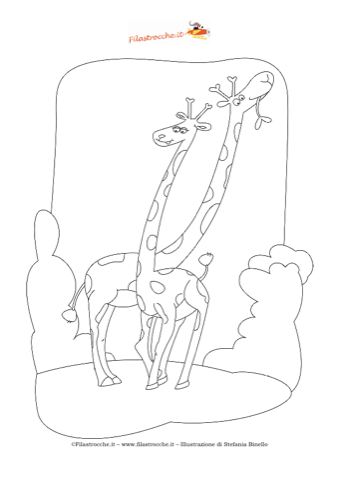 Vi piace colorare? Scatenate la vostra creatività e fantasia con le bellissime illustrazioni di Stefania Binello. Ecco per voi due simpatiche giraffe. Buon divertimento da Filastrocche.it!
