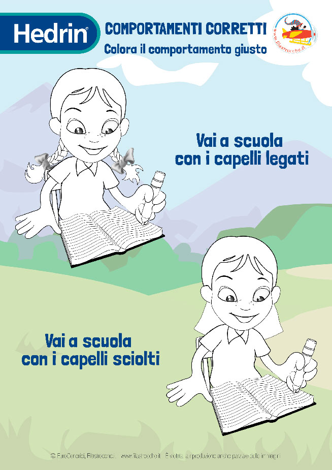 Impara a tenere lontani i pidocchi! Ci sono cose da fare e cose da non fare se vuoi ridurre le probabilità di averli sulla testa…. Scarica i simpatici disegni che abbiamo preparato per te e colora i comportamenti corretti. Sarà meglio tenere i capelli legati o sciolti?