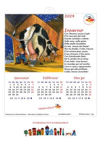 Ecco i calendari 2024 stagionali con le filastrocche di Jolanda Restano e le bellissime immagini di Stefania Pravato.