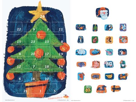 Calendario dell’Avvento fai da te da stampare e ritagliare: il classico calendario con 24 finestrelle da aprire ogni sera per scoprire un’allegra e simpatica illustrazione.