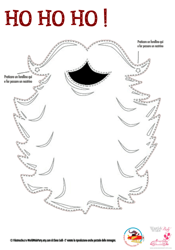 Basterà stampare il file pdf della barba e ritagliarla, praticare due buchini lateralmente e poi con un filo o un elastico fissarla al viso.