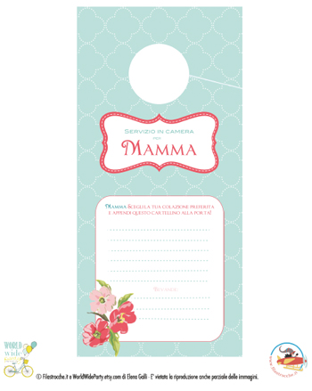 Il mattino successivo, la mamma attaccherà alla porta della sua camera, il cartellino “Servizio in Camera” con la segnalazione della sua colazione preferita. Voi potrete prepararla e cosegnargliela direttamente a letto, in modo che possa godersela nel giorno della sua Festa!