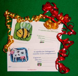 Ritagliate gli Inviti lungo il bordo (ce ne sono due per pagina) compilateli con il vostro nome, il nome dell’invitato e le informazioni sulla Festa!