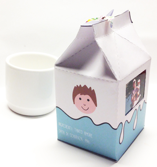 Inserite nella scatola del latte il regalo per la Festa del Papà: una maglietta, un po’ di caramelle, una poesia scritta con le vostre mani… quello che volete!