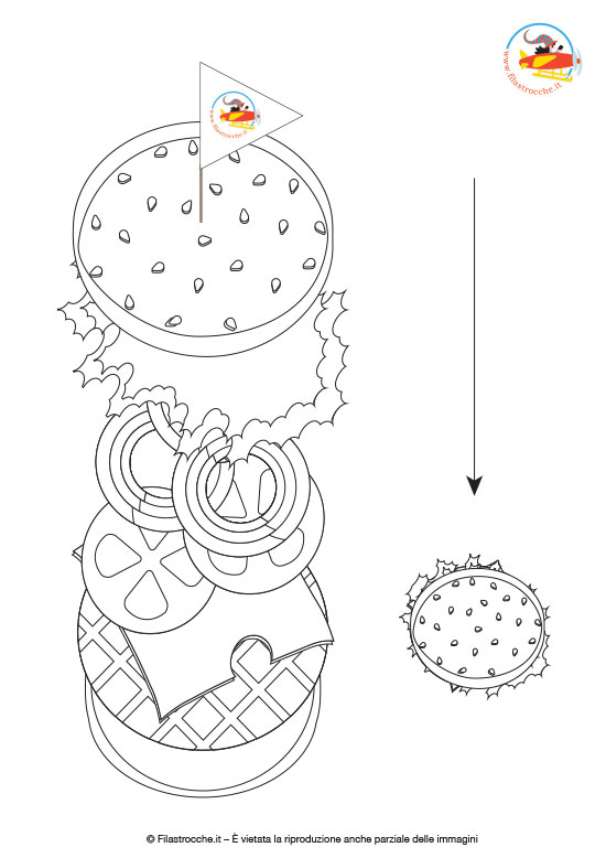 Qui ve li forniamo in due diverse versioni: Panini con hamburger in bianco e nero da colorare e panini con hamburger già colorati: scegliete quelli che preferite!