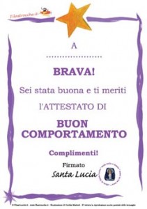 Per stampare un attestato di Buon Comportamento da Santa Lucia, clicca qui!