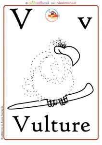I bambini potranno memorizzare la lettera V, la scritta Vulture e associarla all’Avvoltoio.