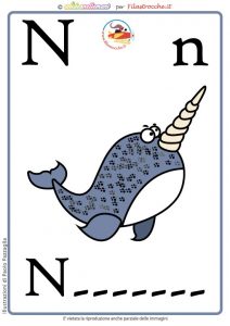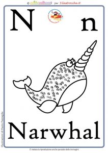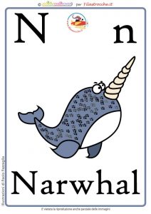 I bambini potranno memorizzare la lettera N, la scritta Narwhale associarla al Narvalo.