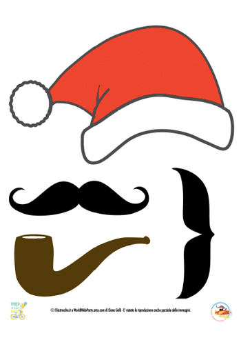Stampate il kit e ritagliate i diversi oggetti (occhiali, baffi, cappello, barba di babbo Natale…). Quindi, con l’aiuto di un poco di colla attaccateli a bastoncini in legno di circa 50 cm di lunghezza.