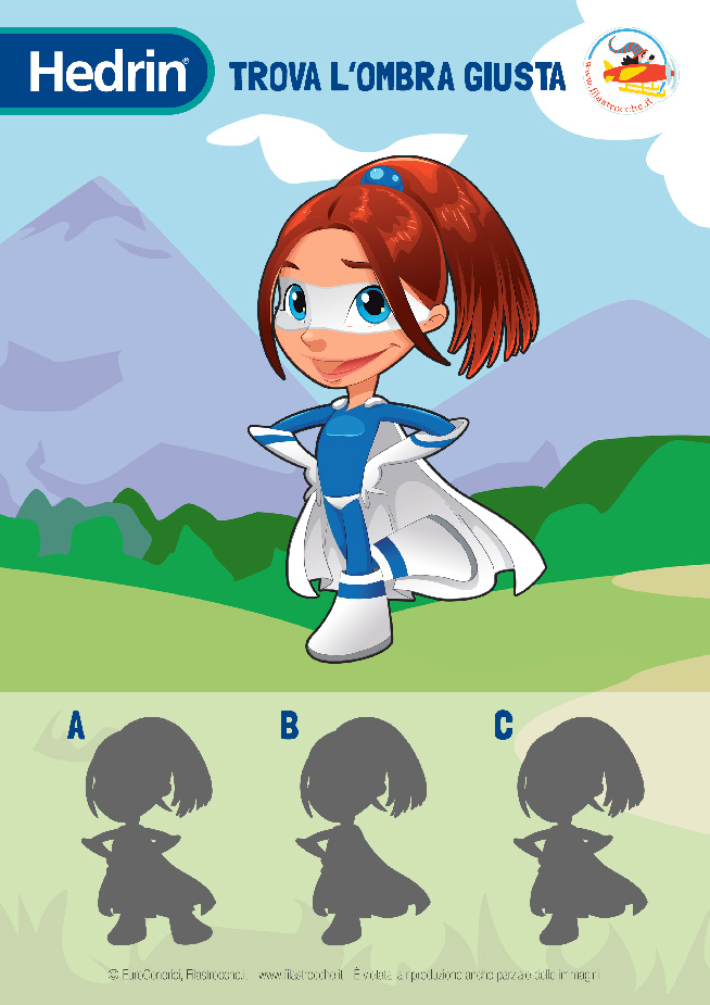 Gioca con lo speciale pidocchi Hedrin. Con Hedrin puoi divertirti, da solo o in compagnia, con un gioco facile e divertente. Con Hed e Drin, i nostri super eroi, sempre a caccia degli antipatici e fastidiosi pidocchietti, trova l’ombra giusta proiettata dalle sagome dei nostri simpatici amici. Chi sarà il più bravo e il più veloce?