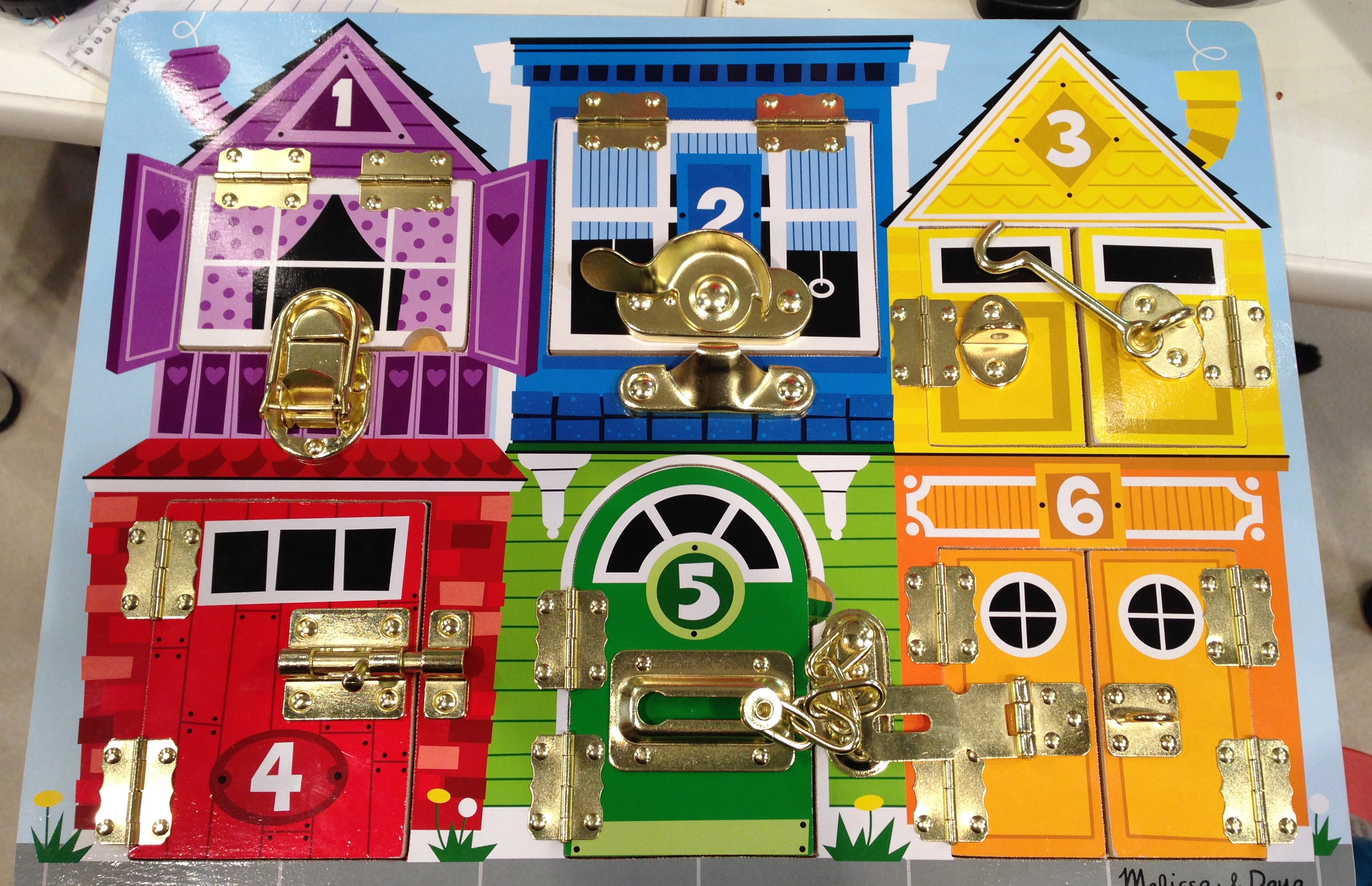 Cominciamo proprio da un giocattolo, che è davvero una chicca: si tratta di una specie di gioco a incastri con lucchetti e chiavi che il bambino deve ovviamente divertirsi ad aprire! Una meraviglia, inventata da Melissa e Doug.