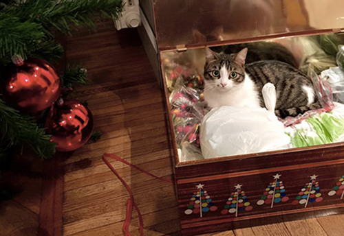 Nella nostra famiglia il rito di fare l’albero tutti insieme resiste anche adesso che i bambini sono cresciuti e, tra una stella e una lucina, corrono a controllare lo smart-phone, per rispondere ai whatsapp. La new entry da due anni a questa parte è però la presenza di Baghi-la gatta nei preparativi natalizi. E’ lei la più eccitata quando dalla cantina vede arrivare gli scatoloni con gli addobbi e sogna solo di buttarcisi dentro a capofitto. La troviamo saltellare con le palline dorate tra le zampe o a soffiare al puntale che –chissà come mai- non le piace. In questi giorni nessuno si arrabbia per non rovinare l’atmosfera e poi apprezziamo il contributo di tutti, anche di una micia un po’pazzerella.