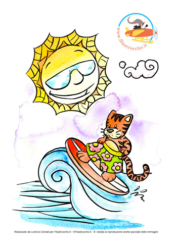 Impariamo a colorare con gli acquerelli: il gatto surfista