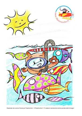 Non usare mai la gomma con i pastelli, altrimenti sai che bel pasticcio verrà fuori! Ora per scaldarti un po’, usa tutta la fantasia che hai per colorare i pesci!