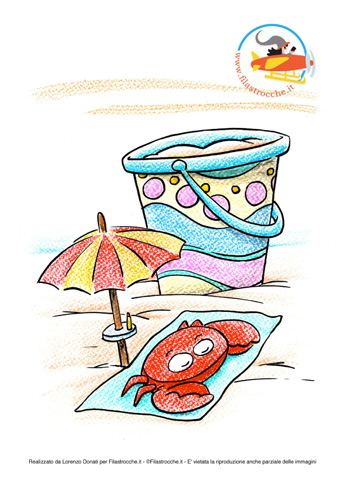 Scarica il disegno di esempio con il granchio sulla spiaggia colorato