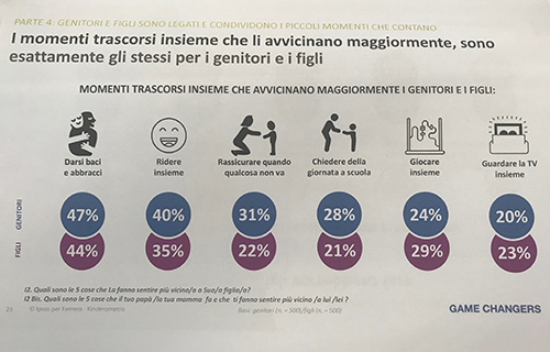 Il dato emerge da kinderometro, il rilevatore di piccoli momenti, un’indagine condotta da Ipsos per Kinder allo scopo di misurare lo stato del rapporto genitori/figli in 5 diversi paesi europei.