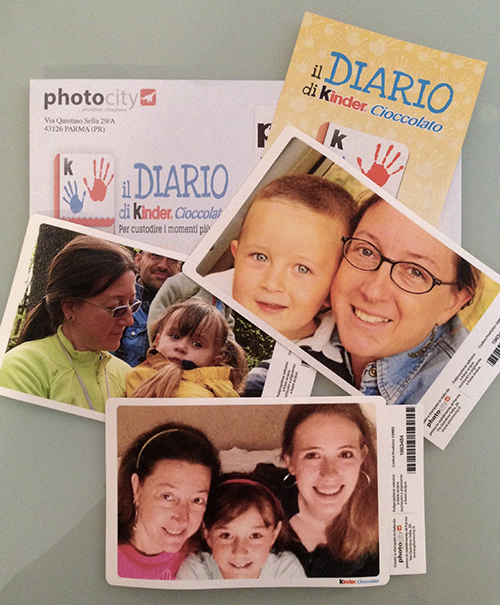 E’ arrivato il mio premio Kinder e io sono fierissima di vedere ogni mattina sul frigorifero la mia foto mentre abbraccio il mio Tommi bambino, accanto agli altri magneti. Per fortuna con #kinderdiario c’era la possibilità di avere 3 foto personalizzate in formato adesivo attacca-stacca, proprio come il numero dei miei figli, così ho deciso di dedicarne una a testa (in realtà ce n’è una in cui le mie due fanciulle sono insieme…). In montagna con Aurora, che all’epoca non si toglieva i codini neppure per dormire, il sorriso spesierato di Matilde, 3 quadretti mamma-figlio che ricordassero un momento speciale. E poi è stato divertente seminarle per la casa a effetto sorpresa.