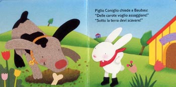 Piglio Coniglio chiede a Baubau: “Delle carote voglio assaggiare!” “Sotto la terra devi scavare!”