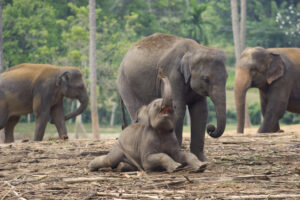 Gli elefanti vivono in una società matriarcale. Sono le femmine che contribuiscono all’organizzazione del branco. Questo significa che oltre alla mamma ci sono anche le altre elefantesse che si occupano di tutti gli aspetti sociali. In particolare sono le femmine, tutte che contribuiscono alla cura e alla difesa dei piccoli.
