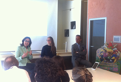 Sono stata invitata alla presentazione di Supermario party 10 per parlare della mia esperienza con i giochi elettronici da mamma di 3 figli dai 9 ai 15 anni. Premesso che a casa nostra nessuno ha mai demonizzato consolle e giochini, intesi come momento di svago e divertimento condiviso sia dai genitori sia dai figli. Da noi quando si gioca alla wii viene abbattuta qualsiasi differenza di età (almeno per quel lasso di tempo necessario a finire la partita!) e questo è l’aspetto secondo me positivo. L’ultima versione di Super Mario si propone come esplicitamente come “videogioco aggregante”, dal momento che offre una grande varietà di minigiochi e incoraggia attivamente la cooperazione tra i giocatori. Anche Alessandra Carenzio, Docente di Tecnologie dell’Istruzione dell’Apprendimento e di Metodologia delle attività formative, Università Cattolica di Milano e Piacenza, ha affrontato il tema di  giocare e videogiocare in famiglia, sottolineando l’importanza di come il divertimento sia il punto principale del videogiocare. Ma anche lei ha ricordato a noi genitori il nostro ruolo centrale e determinante nella scelta dei contenuti e durante l’esperienza del gioco. Perché è proprio attraverso le relazioni che si creano attorno al videogioco, alle esperienze di condivisione fisica e/o virtuale con le altre persone che l’esperienza acquista un valore di crescita per il bambino.