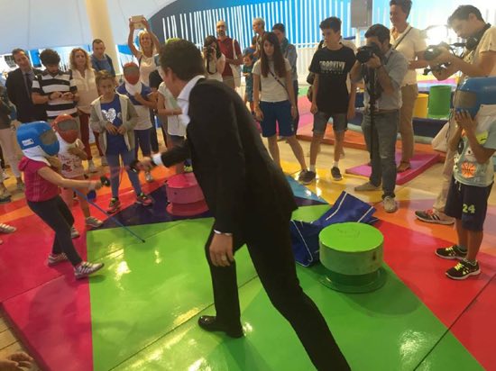Dal palco ai campi da gioco: una volta spenti i microfoni della conferenza, i campioni hanno guidato i bambini nell’area dedicata alla prova degli sport. Una sfida con il fioretto, qualche tiro a pallavolo e basket, una discesa in windsurf… I miei figli, felicissimi, non si sono fatti mancare niente, eccitati dall’avere a disposizione un intero padiglione, in compagnia di grandi atleti.