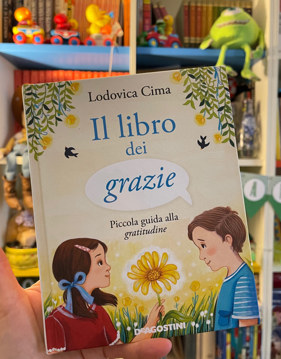 Il Libro dei Grazie, dalla penna di Lodovica Cima, è un originale “catalogo” tutto scritto in blu chiaro – che tranquillizza e calma – che raccoglie 20 modi diversi per dire grazie, ognuno a seconda della situazione e accompagnato da emozioni differenti: c’è il grazie timido, il soffocante, il corto e il lungo, il grazie di cuore, quello comandato, il grazie però, il grazie con il sorriso e quello con le mani… per tutti i gusti!