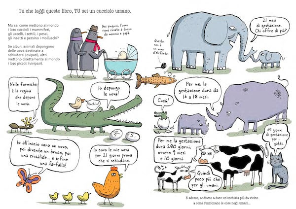 Dal concepimento alla gravidanza, fino al grande giorno in cui il piccolo viene alla luce, con accenni di anatomia e qualche paragone al mondo animale. Tutto rigorosamente scientifico.