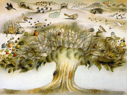 Un libro breve ma intenso, sul rapporto uomo-natura, che ispira pace e tranquillità. Tullio Pericoli – pittore e disegnatore – ha letto e annotato a margine il testo, vero generatore di immagini, regalandoci la sua interpretazione visiva dell’opera, con tavole a matita, pastelli, carboncino e acquerelli. Immagini che fanno sognare e invogliano alla rilettura del testo. Ancora una volta.