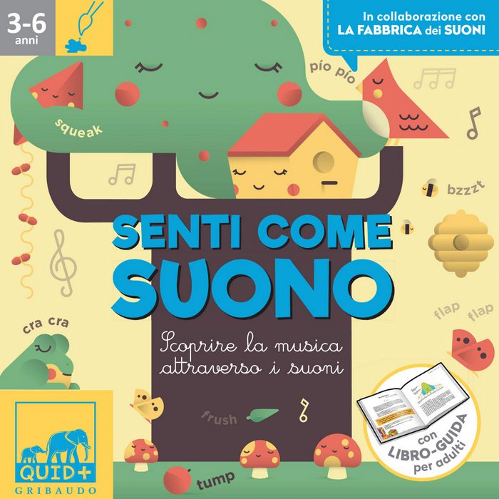 Senti come suono è una proposta della collana editoriale Quid+ dedicata ai bambini in età prescolare con prodotti che presentano teorie pedagogiche avanzate in modo semplice e accattivante, per essere utilizzate nella vita di tutti i giorni.