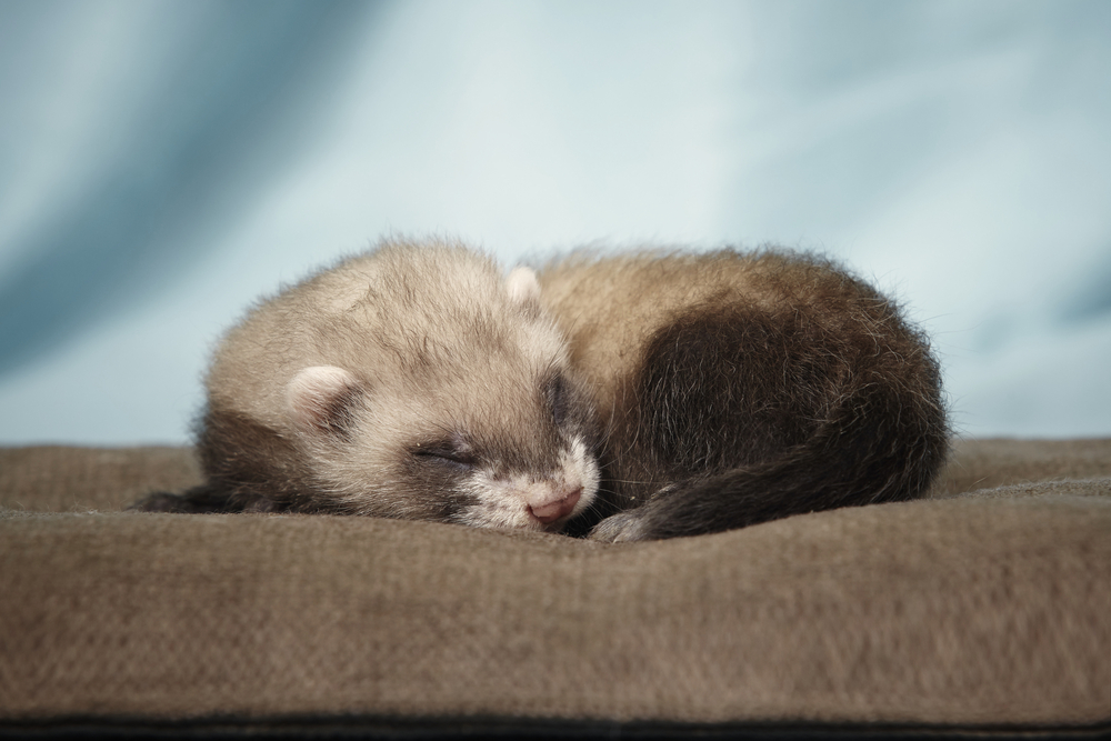 Uno dei bisogni primari del furetto è dormire diverse ore al giorno. Non preoccupatevi se sembra apatico, in realtà si sta solo ricaricando le batterie. Non tenetelo però troppo chiuso in gabbia: è una cosa che lo deprime terribilmente. Lasciategli il più possibile la porta della sua gabbia aperta.